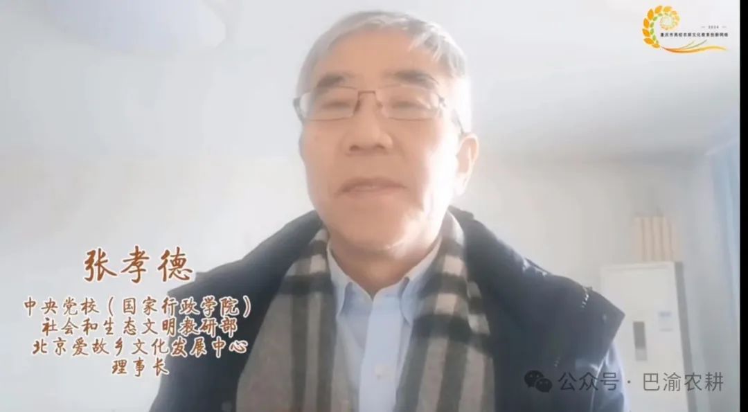 农耕文化领域专家线上学术快闪环节,全国著名三农专家温铁军教授,农业农村部全球重要农业文化遗产专家委员会副主任、中国农业博物馆研究员曹幸穗,中共中央党校(国家行政学院)社会和生态文明教研部、北京爱故乡文化发展中心理事长张孝德教授,三农问题专家、中国农业大学农民研究所名誉所长、农业文化研究中心主任朱启臻教授,中共中央党校社会和生态文明教研部刘忱副教授,中国人民大学农业与农村发展学院周立教授,东北师范大学乡村振兴研究院执行院长李涛教授,杭州师范大学美术学院、亚洲艺游学研究院院长胡俊教授,福建农林大学乡村振兴学院邱建生博士,福建省屏南耕读文化博物馆馆长张书岩,北京爱故乡文化发展中心黄志友总干事,中国农业博物馆蓝蔚博士等12名专家学者就农耕文化传承问题各抒己见,回顾了重庆巴渝农耕文化陈列馆的发展历史,肯定了农耕馆对传承中华优秀传统文化的积极作用,探讨了新时代农耕文化教育传承的价值认同与实践可能。