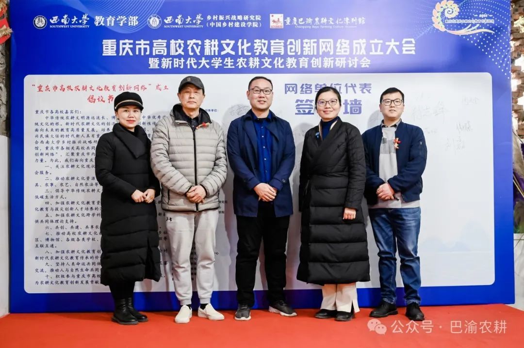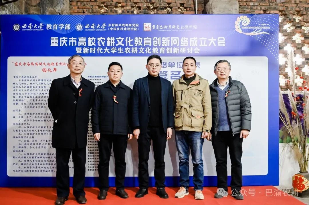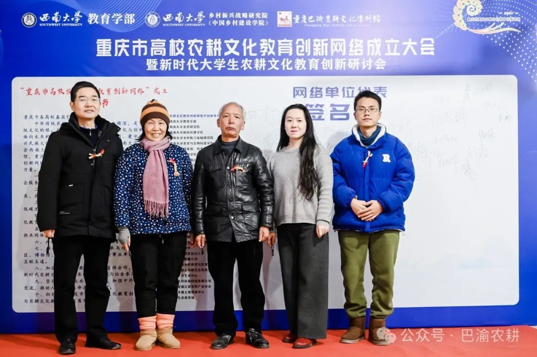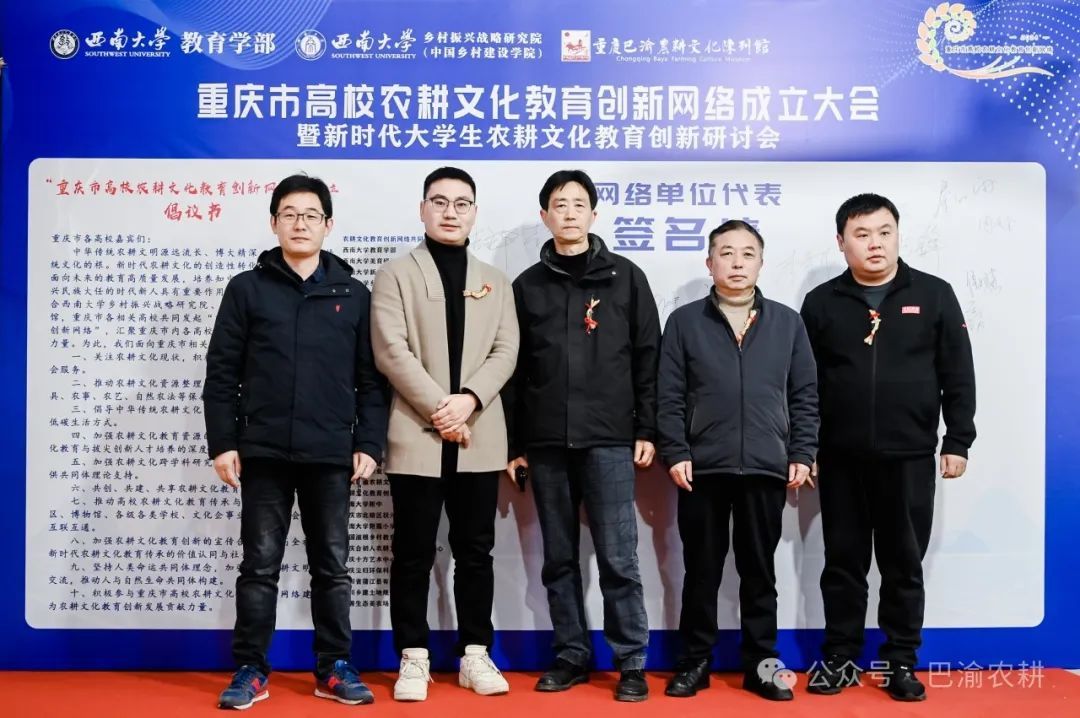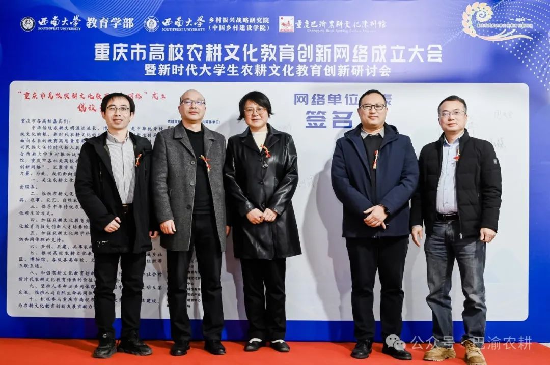 best365英国在线体育官网教育学部副部长王正青宣读《“重庆市高校农耕文化教育创新网络”成立倡议书》,面向参会嘉宾与共同体单位发出十条倡议,呼吁重庆市内各高校汇聚起农耕文化教育创新共同体力量;重庆市高校农耕文化教育创新网络共同体单位代表、best365英国在线体育官网农耕文化教育创新社学生代表们上台在倡议书上签名并合影。