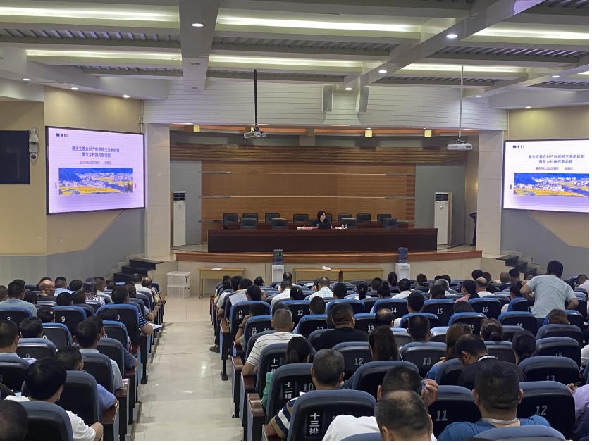 5月30日上午,正高级经济师,重庆农村土地交易所交易二部部长张智红就如何健全完善农村产权流转交易新机制、激发乡村振兴新动能开展教学培训。张智红部长从乡村振兴战略视角阐述了农村产权流转交易市场在农业农村现代化进程中的重要角色定位,并结合当地实践向学员介绍重庆市农村产权流转交易市场体系的具体内容。当日下午,各村党支部书记及相关干部围绕“如何利用自身优势壮大集体经济”开展小组讨论。各村党支部书记在讨论过程中结合本次培训内容积极发言,踊跃交流,各小组讨论会场氛围热烈。