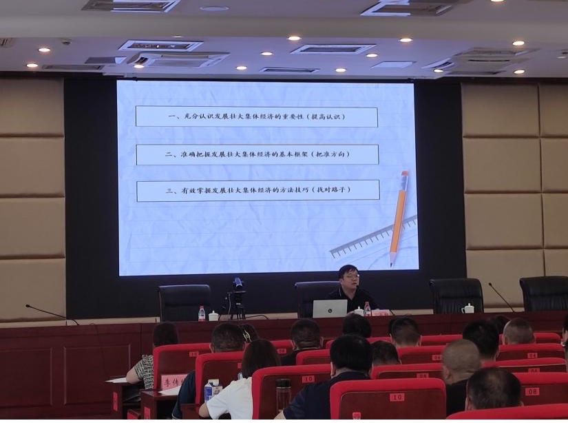 开班仪式结束后,中国人民大学博士、长寿区农业农村委二级主任科员罗士轩围绕发展壮大村集体经济进行授课。罗士轩博士表示壮大村集体经济的首要任务是认识其重要性,其次是准确把握壮大村集体经济的基本框架,最后是有效掌握发展壮大村集体经济的方法技巧,还着重阐述了集体经济与乡村治理的协同发展关系。