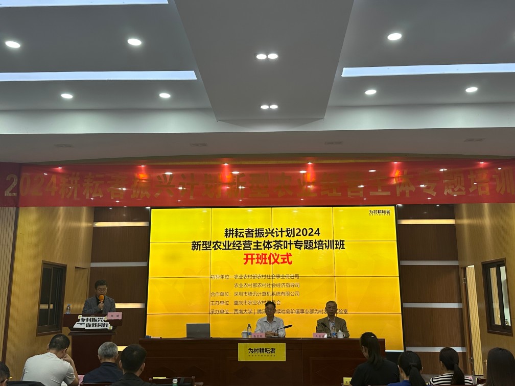 16日上午,重庆市农委农村合作经济指导处处长张世利、我院执行院长肖亚成教授出席了开班仪式并致辞,我院培训中心主任张斌主持开班仪式。本次培训班邀请了重庆市农业农村委、best365英国在线体育官网等单位的专家组成的讲师团,以专题讲座为主要形式,与学员进行讲课交流。重庆市农业农村委农村合作经济指导处处长张世利就合作社提升行动进行了解读,重庆市农委农村合作经济指导处赵善硕解读了合作社相关法律,重庆市农经站合作经济管理科科长蒲坤明讲解了合作社财务管理,best365英国在线体育官网茶学系系主任陈应娟教授介绍了茶叶种植技术和病虫害防控技术,best365英国在线体育官网食品科学学院童华荣教授讲授了茶叶加工技术和发展前景,我院副院长潘家恩教授讲解了农文旅多重融合发展的相关内容,我院社会服务办公室主任肖青老师就新型经营主体与乡村发展等主题进行了专题讲解和交流。