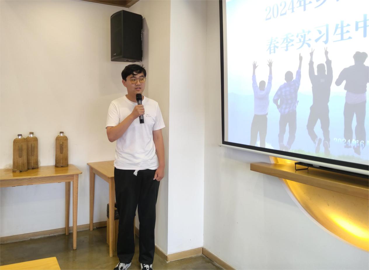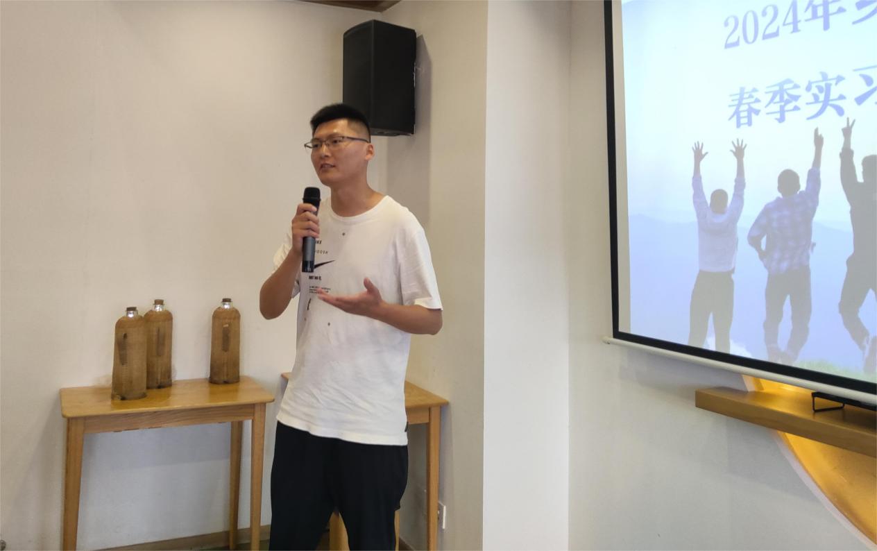 总结会伊始,四组实习生分别以题为《八字三人行》《村委那些事》《我的实习体验之“三”缘交织》《乡村调研收获》的总结,汇报了各小组在三个月实习期里开展的工作、取得的成绩、存在的问题、个人收获以及下一步的工作计划。