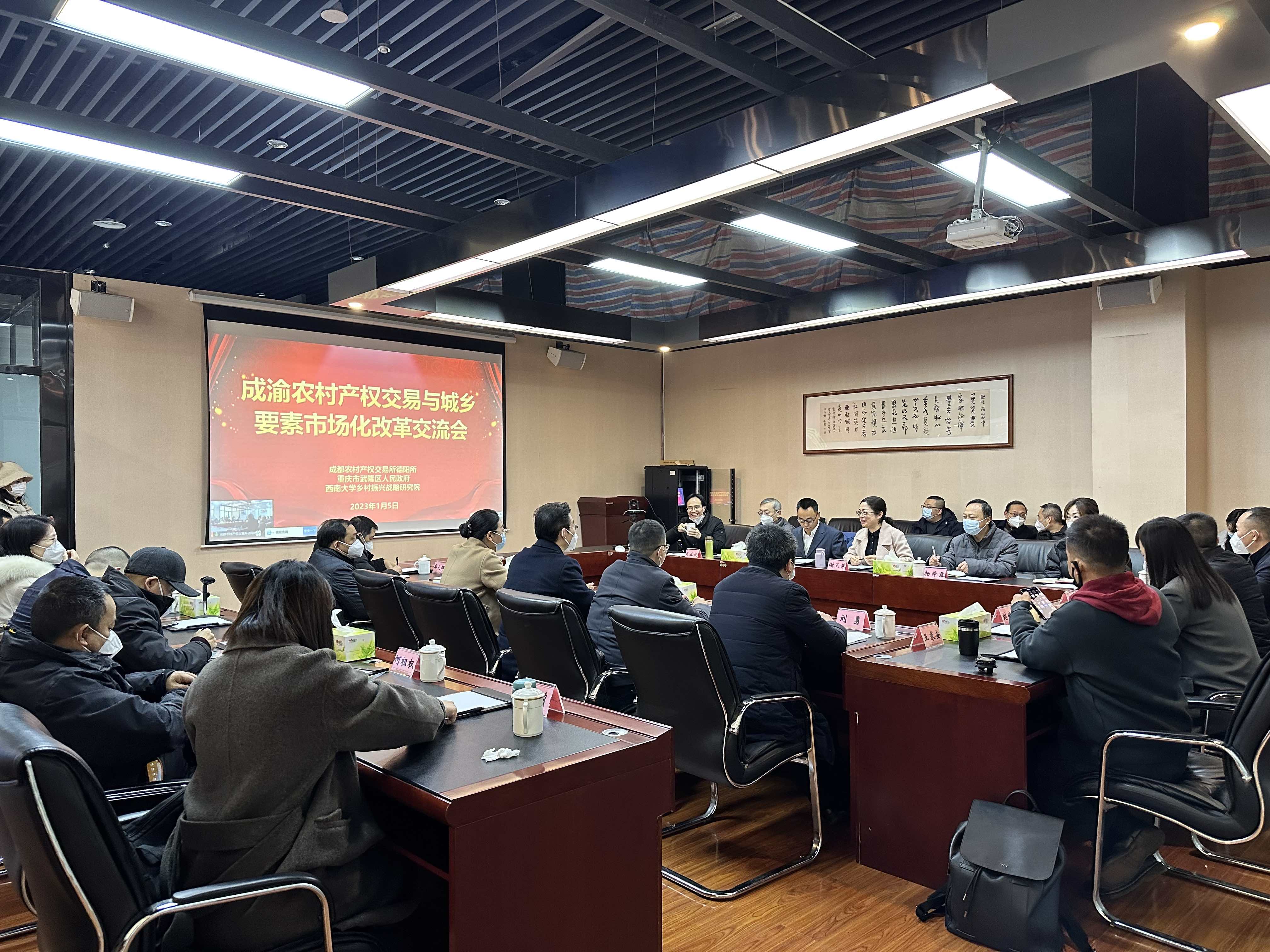 除此外,与会人员还围绕探索建设成渝地区统一的农村产权交易市场等话题展开讨论。我院已于2022年2月22日在武隆区成立“温铁军工作室”并开展战略合作,下一步将推动德阳和武隆两地在农村产权流转、金融体制创新、优化资源配置等方面展开交流合作,为成渝乡村振兴协同创新贡献更多力量。同时还将依托“温铁军工作室”,开展农村产权交易政策创新设计与“农村产权交易+”试验探索,深入总结德阳农村产权交易流转经验,共同开发特色专题培训课程,进一步探索农村产权流转交易与城乡要素市场化改革。