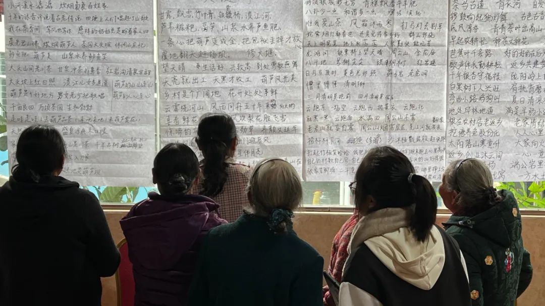 “你不要开玩笑,老太婆字都不认识,你叫我去写歌?”“你这个活动,不能耽误我种菜。下雨的时候我可以来,如果出太阳,我就不来了,我要去地里干活儿。”……很多次,孙恒组织村歌工作坊时都会遇到这样的问题。为什么要动员村民参加?2016年,孙恒所在的“爱故乡”公益机构组织过一次“寻找故乡之歌”的活动。收集上来的绝大多数歌的共同特点是,由一两位专业人士作词作曲。虽制作精良,但村民不知道,也不会唱。准备做村歌后,孙恒也查阅了一些资料,发现很多村歌的创作都是如此。“我想,既然是村歌,就应该是村民的心声,因为村民是村庄的主人,他们最熟悉最了解自己的生活与村庄的文化历史。去学别人的歌,跟唱自己的歌,那个感觉完全不一样。文化的自信从哪来?不是靠外界给,而是由内而外、从自己的生命和生活中、从土里面长出来的,我觉得这才是真正的文化自信。”所以,孙恒团队创作村歌的模式是“以村民为主体的参与式集体创作”。团队先到村里进行充分走访调研,了解文化、历史、风土人情,然后用工作坊的形式让村民讲述生命故事和村庄的文化历史大事,这些是歌词的素材。当这些作为歌词的素材在墙上贴满时,他们会一个字一个字地“抠”出歌词,之后,孙恒他们便发挥音乐方面的优势,结合本村的传统音乐形式进行谱曲。