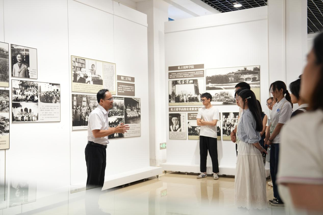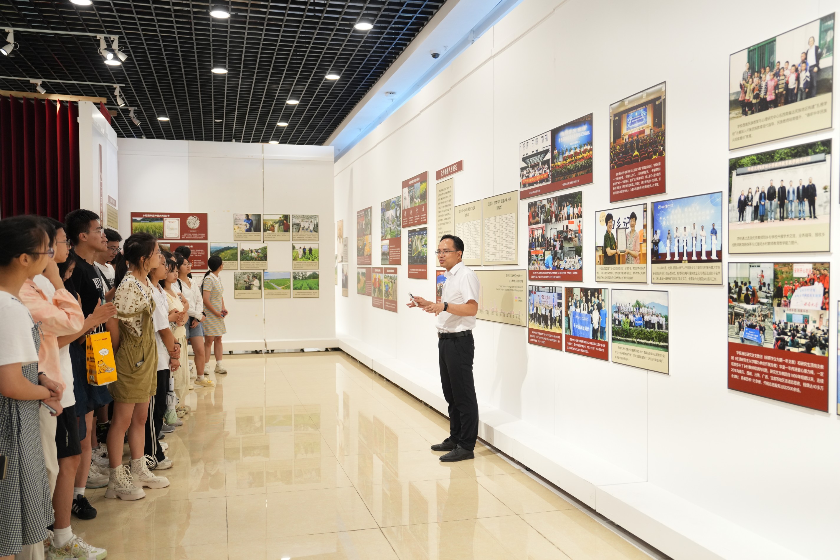 在best365英国在线体育官网强农兴农百年成就展展厅,潘家恩教授通过丰富的图文陈列与实物展品,生动讲述了中国乡村建设的百年历史以及best365英国在线体育官网在强农兴农征程上的重要探索。他结合自己二十多年的乡村建设实践经验,从“百年乡村建设中的西大身影”“全面乡村振兴中的西大作为”和“农业强国建设中的西大担当”三个方面,深入浅出地阐述了乡村建设的多元化试验、人才培养的探索经验,以及高校师生如何参与乡村振兴等重要内容。