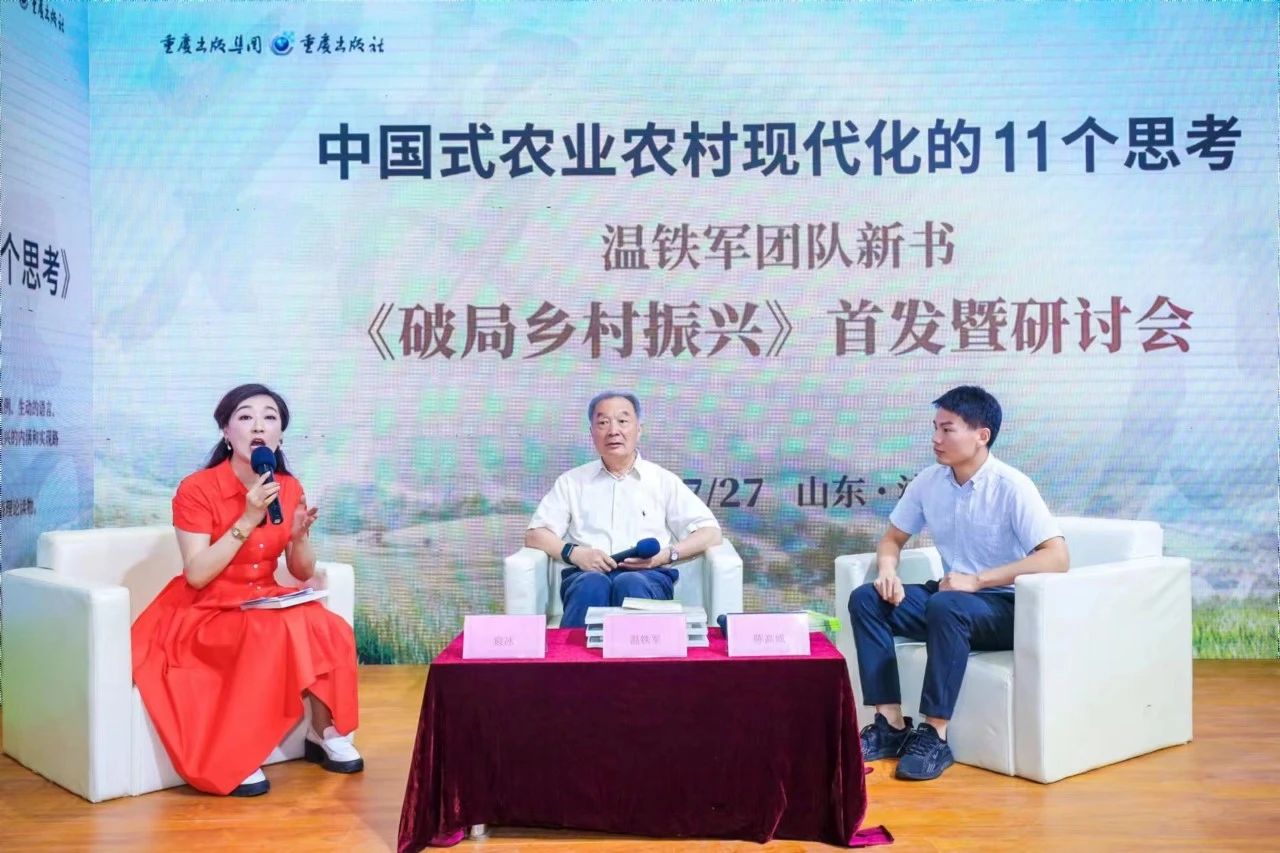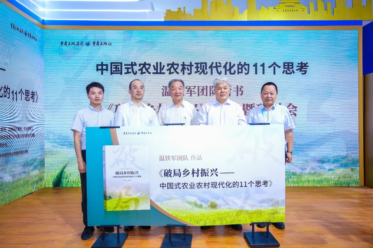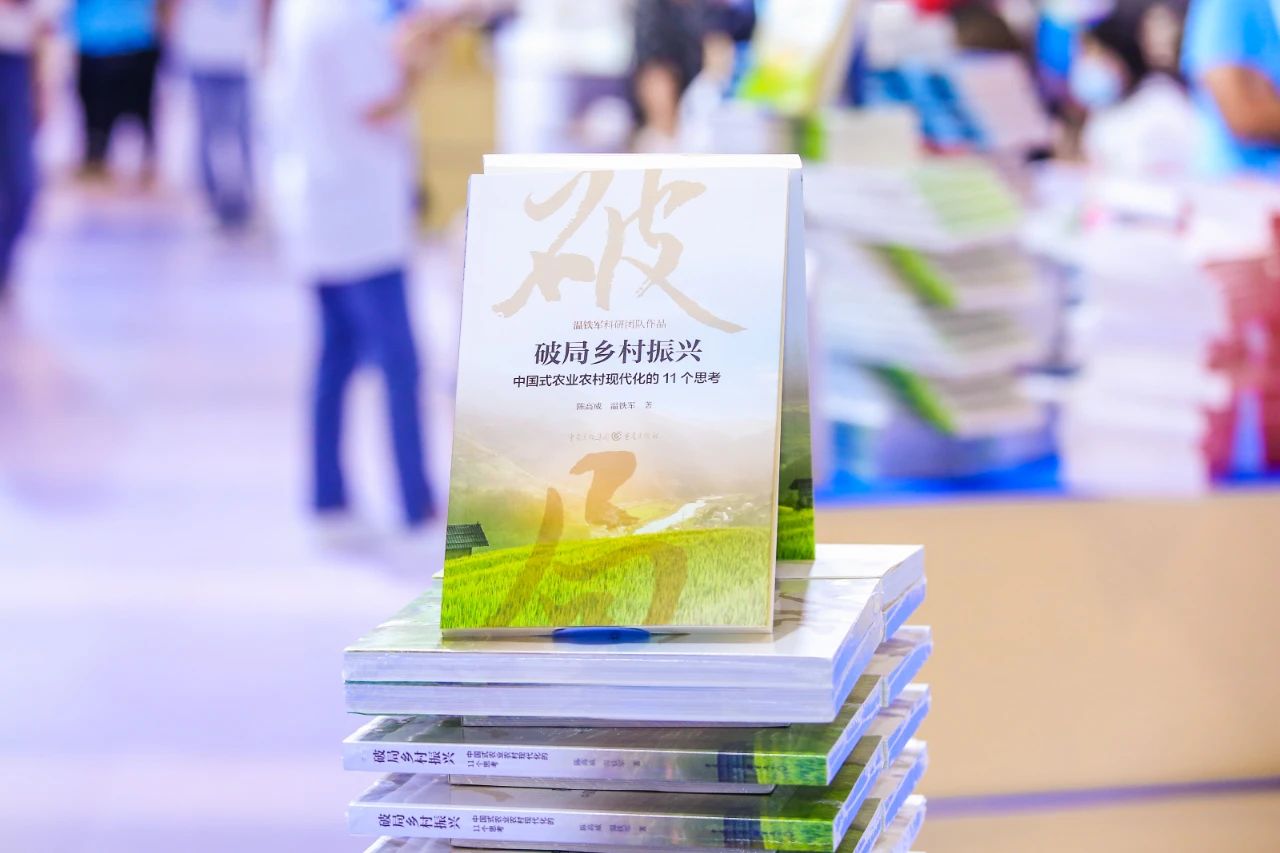 7月27日,我院首席专家温铁军教授最新著作《破局乡村振兴——中国式农业农村现代化的11个思考》在第31届全国图书交易博览会上正式亮相。本书由重庆出版集团出版。众多专家学者,以及来自各地的读者,共同见证此书的新书首发式。参加活动的领导有中国出版协会理事长邬书林;韬奋基金会理事长聂震宁;中宣部出版局图书处处长王为衡;中宣部出版产品质量监督检测中心主任袁亚平;重庆市委宣传部副部长马然希;中国编辑学会会长郝振省;中国新闻出版传媒集团党委书记、董事长马国仓;中国出版传媒股份有限公司总经理李岩;中国出版协会副理事长兼秘书长王利明;中国出版协会常务副秘书长吴宝安;安徽新华传媒股份有限公司副董事长兼总经理张克文;重庆出版工作者协会会长周安平;重庆市委宣传部印刷发行处处长吴扬;重庆出版集团副总编辑邱振邦;重庆出版集团副总经理高岭;重庆出版集团副总编辑别必亮;重庆出版集团副总编辑郭宜。