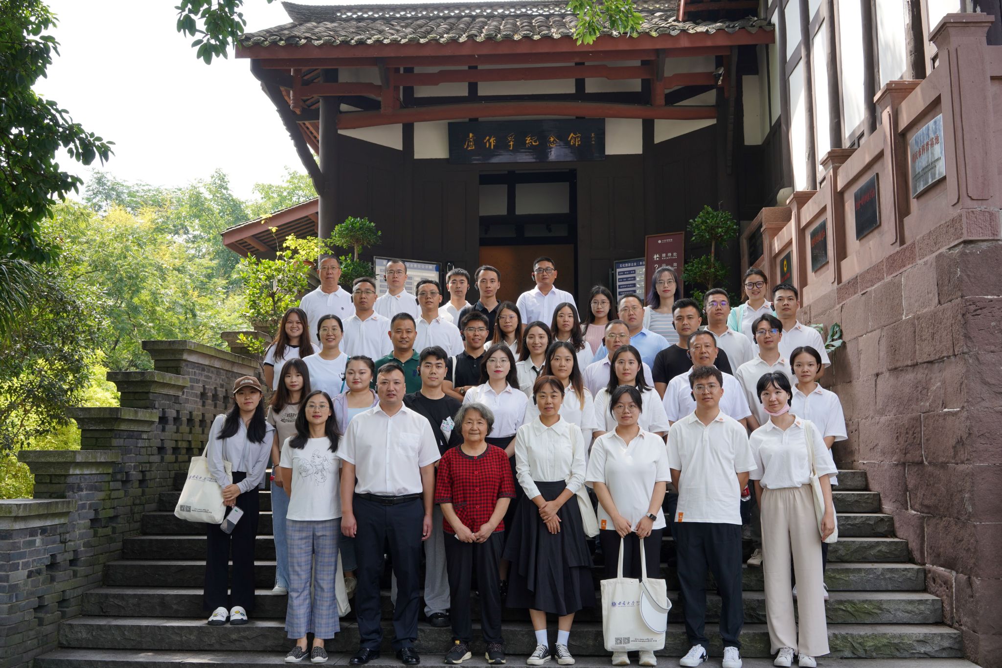 参观结束后,学员们在卢作孚纪念馆外与我院特邀研究员周鸣鸣教授交流。周教授为大家讲解了卢作孚的爱国主义精神和启迪民智的育人情怀。期间周老师哽咽落泪,其真诚情感深深感染了在场的每一位学员。最后,周老师嘱咐学员们一定要勿忘初心,艰苦奋斗,为社会造福。