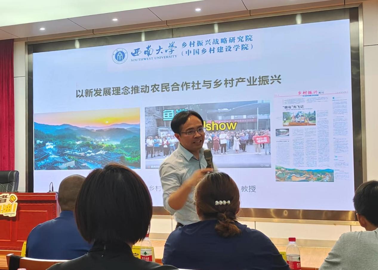 下午,我院地方合作办主任肖青老师以《合作社规范化建设与市场营销新手段》为主题授课。从如何办好一个合作社或家庭农场、农民专业合作社的内部管理、如何经营合作社、如何管理合作社、如何做强做大合作社、合作社的业务运营、农产品十大营销策略七个方面进行讲解。在讲座最后,他还教大家一起学唱《互助合作歌》。
