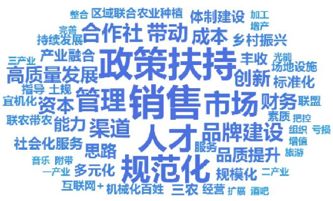 课后张斌老师带领各位学员进行“农民合作社提升行动”的主题讨论,各小组分别完成了小组词云图,最终汇成班级词云图。