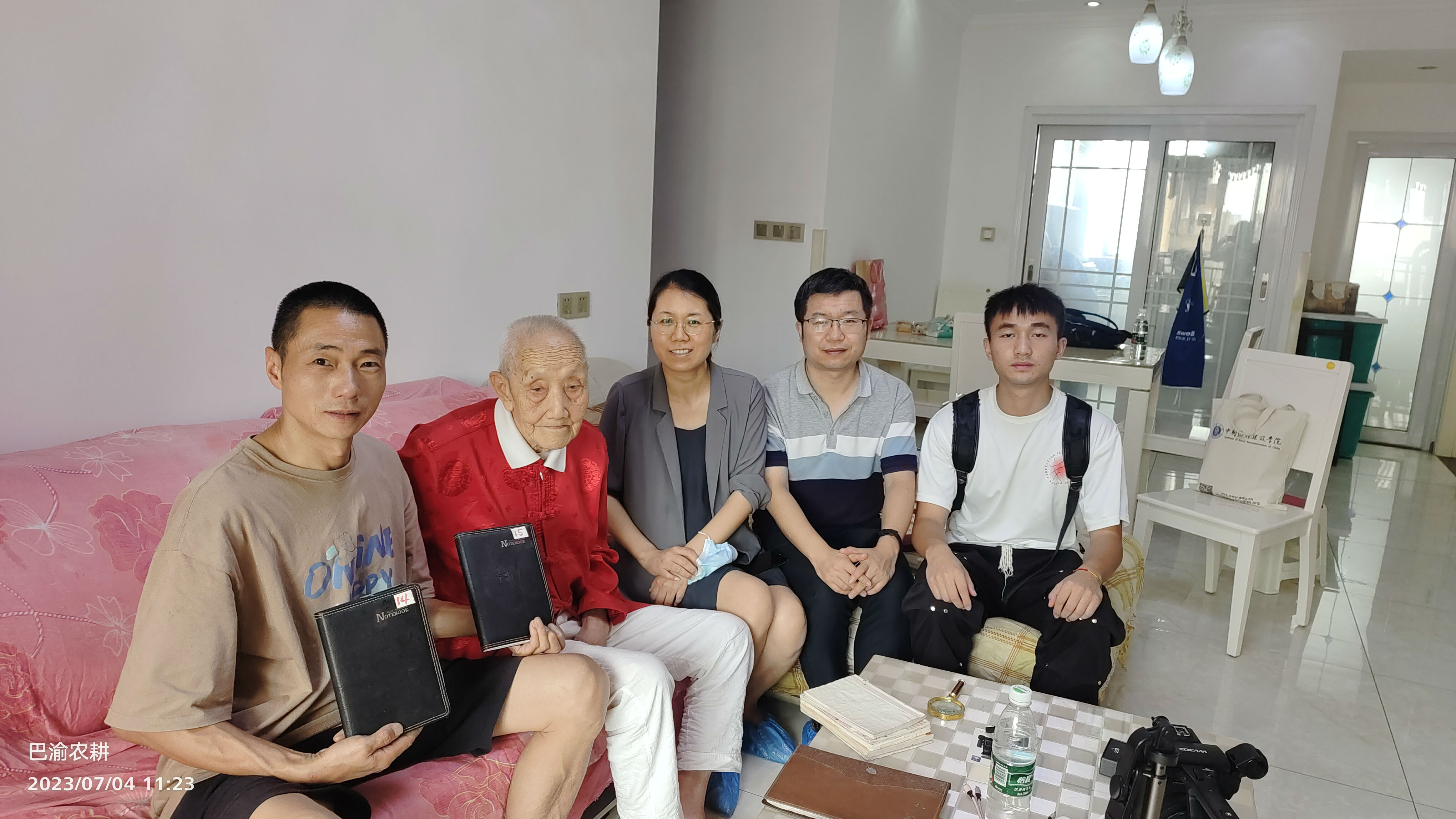 2023年7月4日上午,我院“百年乡建口述史”项目组成员张艺英、张斌,随北碚蔡家巴渝农耕馆馆长刘刚及best365英国在线体育官网教育学部“农耕教育口述史”项目组的两位同学一起前往蔡家中庚城小区做口述访谈。此次的访谈对象是一位高龄101岁的老人——胡懋煜,他于1947-1949年期间在晏阳初领导的乡村建设实验区——华西实验区担任过中心民教主任,是一位名副其实的“老”乡建工作者。