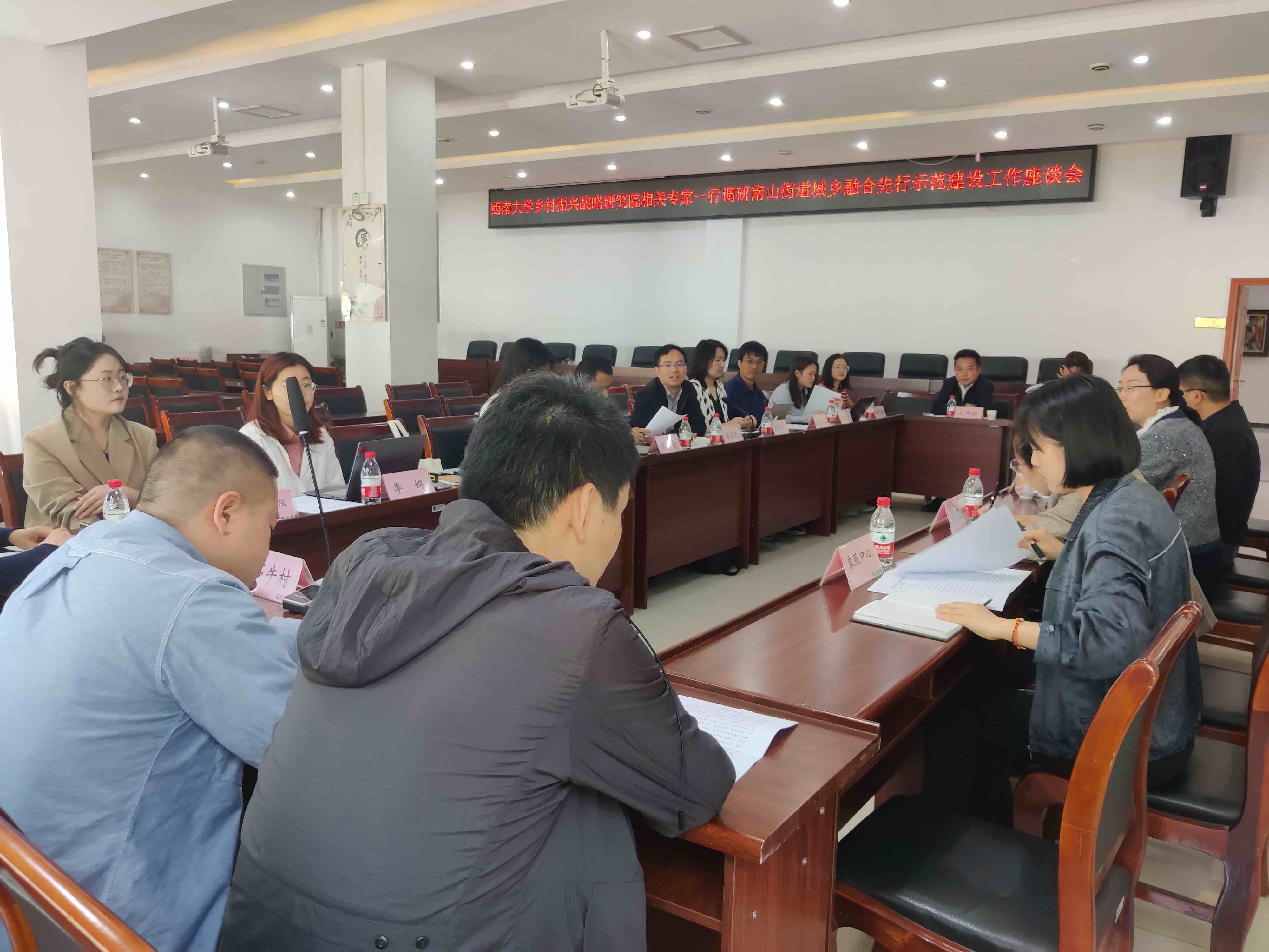 随后,相关部门与调研组就城乡融合发展面临的困境、未来合作方式、工作室相关机制等内容进一步交流。区委改革办、区政府办公室、区发展改革委、区财政局、区农业农村委、区文化旅游委、区规划和自然资源局、区生态环境局、区供销合作社、南山生态保护发展中心、区城乡融合发展公司及峡口镇、广阳镇、南山街道分管负责人参会。
