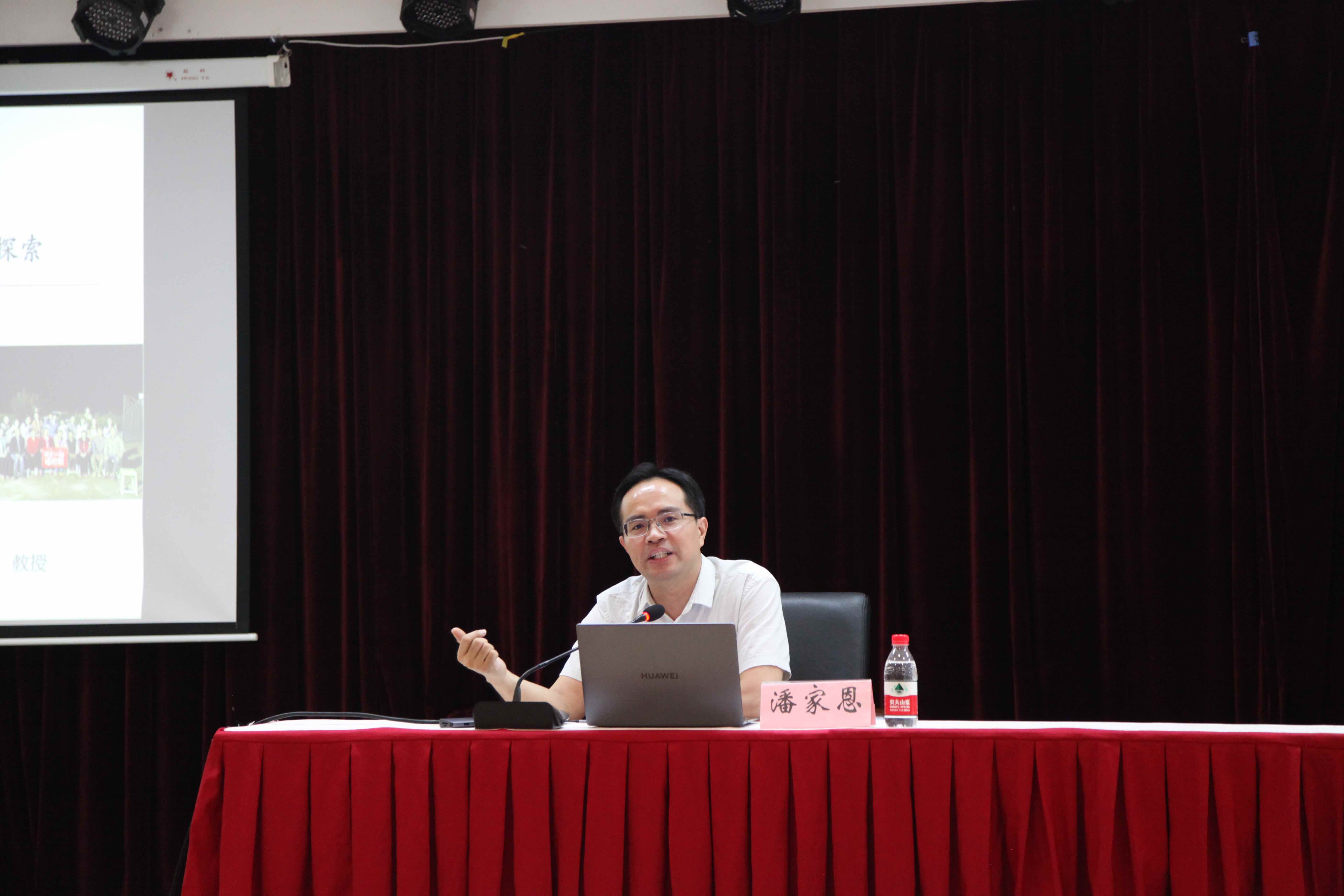 讲座伊始,潘家恩教授提到北碚是百年乡建的“集大成之地”,卢作孚、梁漱溟、晏阳初和陶行知都曾在此投身乡村建设,以行动诠释知识分子的另一种“可能”。潘教授引用陶行知先生和费孝通先生的观点,启发学生思考自身与故乡的关系,引导学生通过精读韩少功对“山里少年的描写”,重新认识“农民”身份和“农村”现状。他鼓励师范生用更为开放的视野面对乡村,重新认识脚下的土地、思考参与故乡变化的可能性。