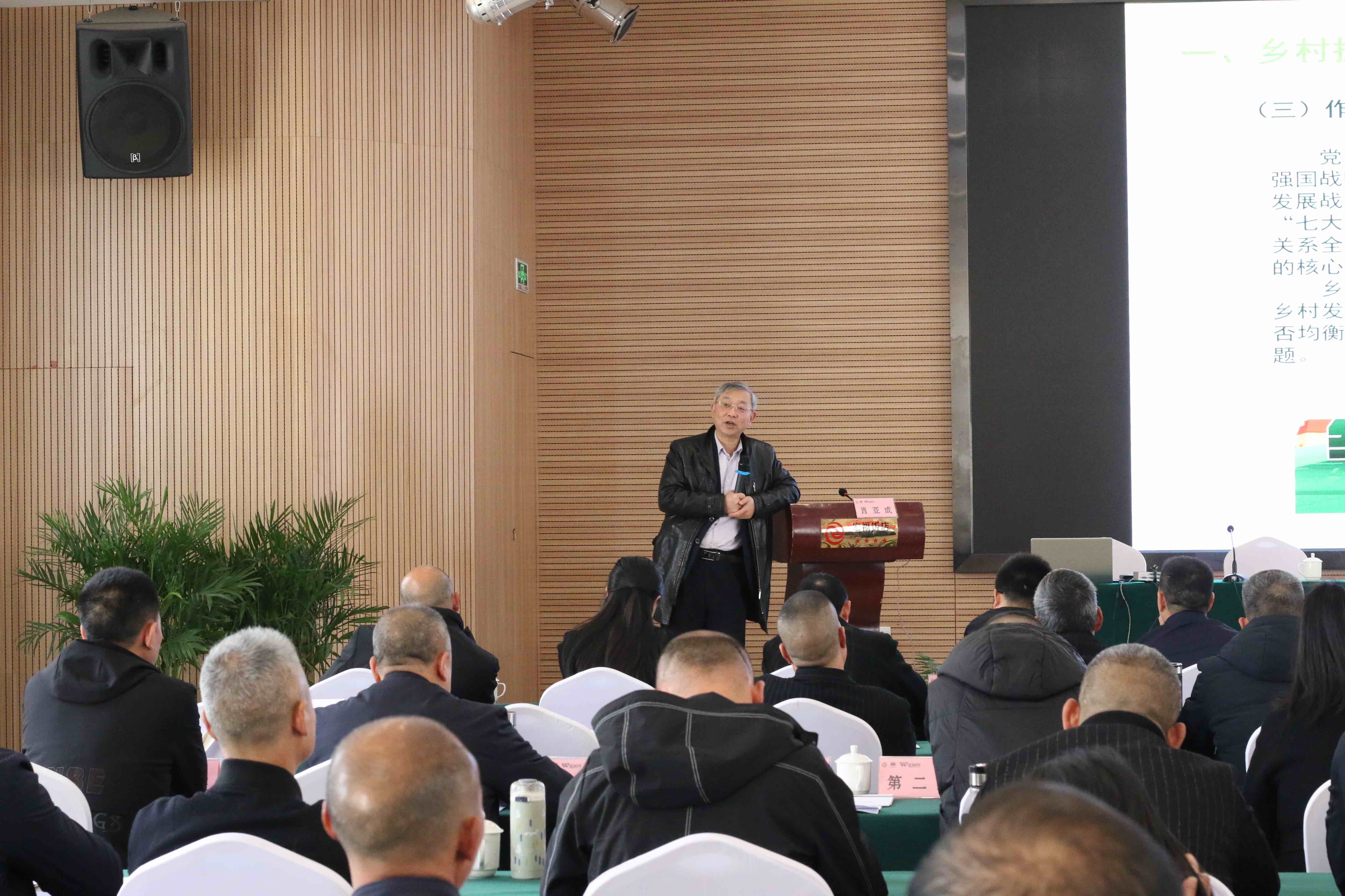 开班仪式结束后,肖亚成院长为学员们作专题教学。他从中国历史脉络出发,从历史到现实:分别介绍了晏阳初、梁漱溟、卢作孚等近代仁人志士们为了振兴乡村,采用了不同的实践方式救济乡村,并介绍当代乡村发展应该区别于西方国家,走中国特色社会主义发展道路,坚持乡村振兴“三步走”战略。此外,肖院长还对当前乡村振兴的途径、未来发展的空间等内容做了介绍。