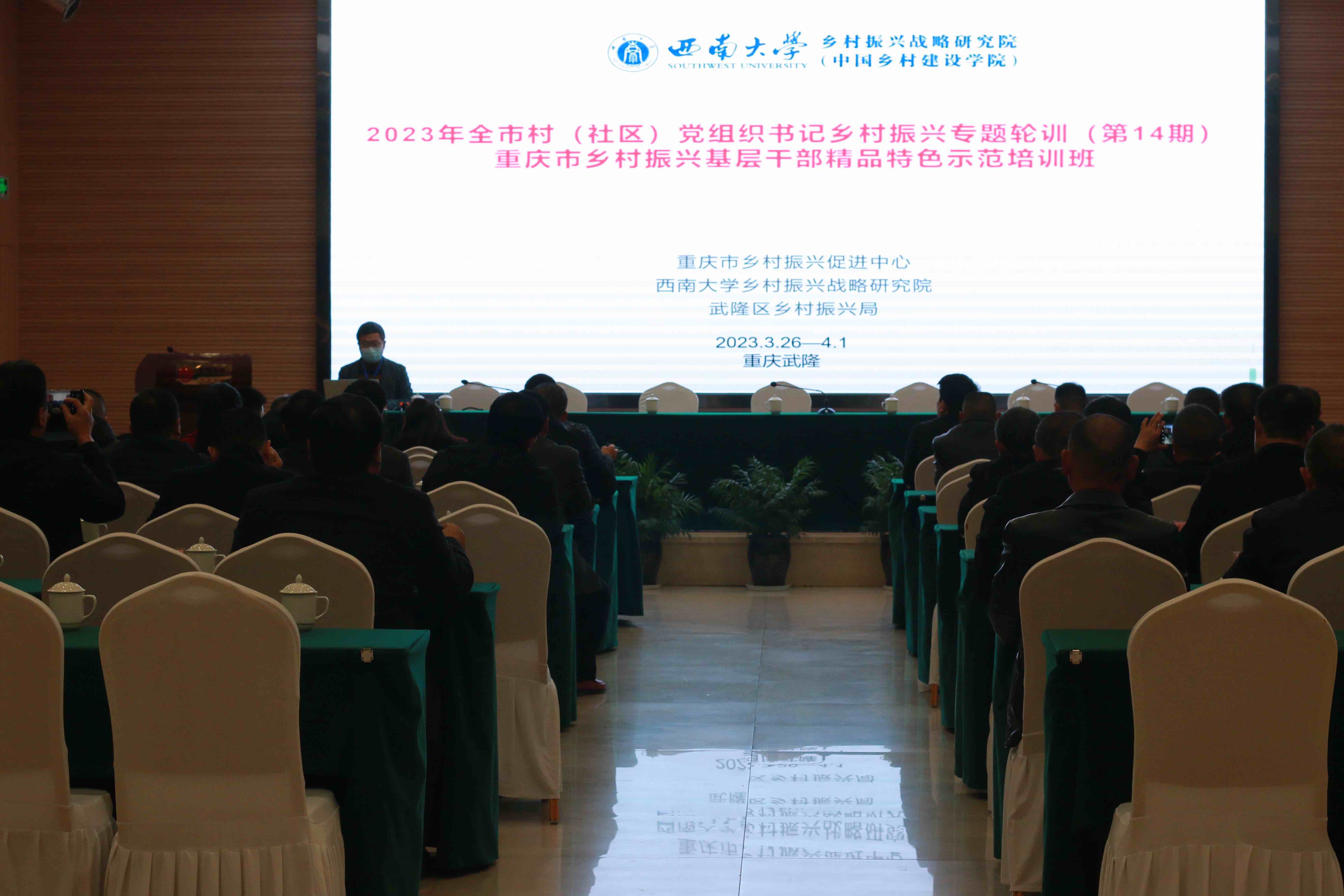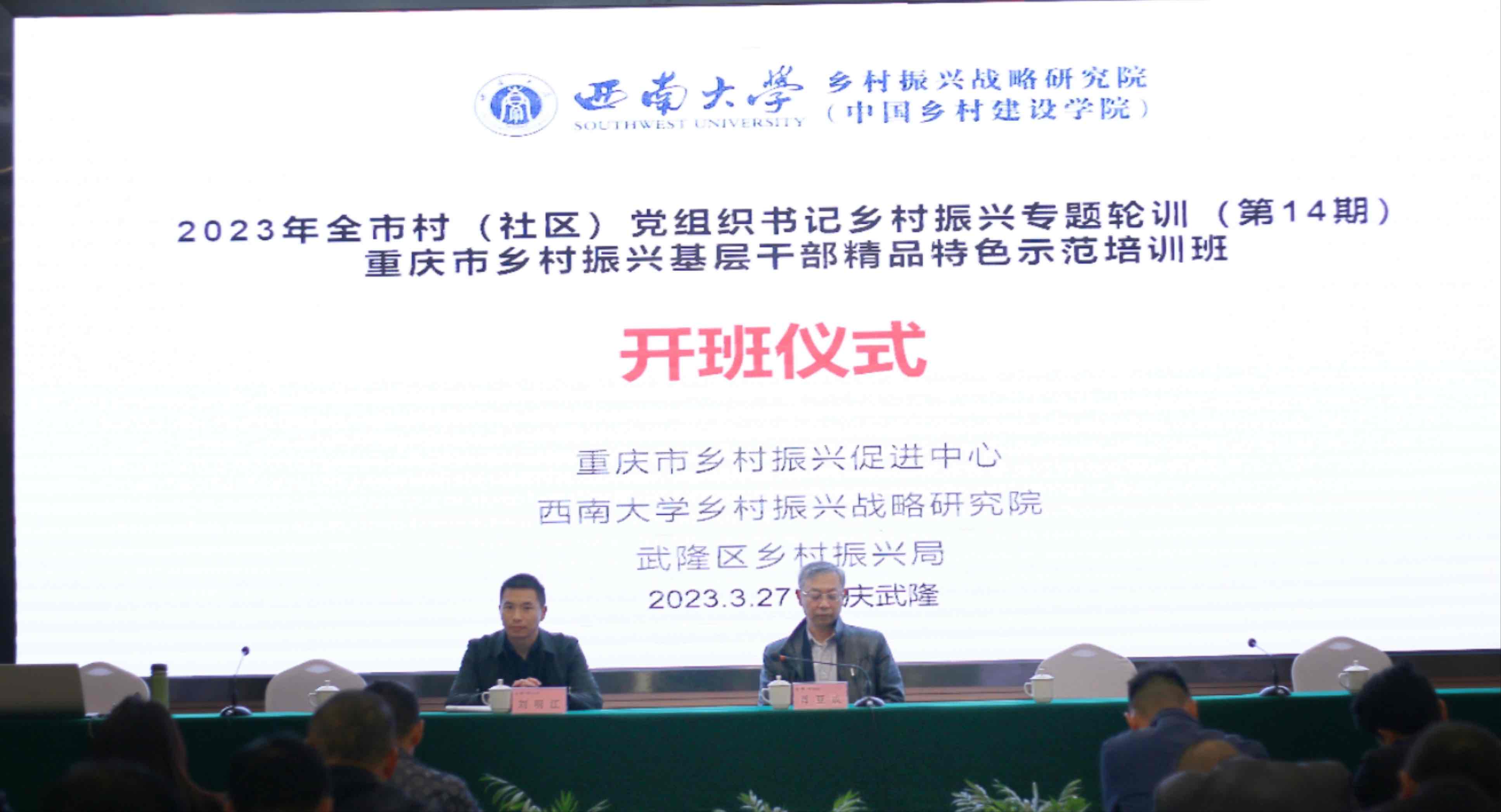 为贯彻党的二十大精神,促进重庆市乡村振兴,提升基层党组织对乡村振兴工作的思想认识和实务能力,3月27日,重庆市村(社区)党组织书记乡村振兴专题轮训(第十四期)暨重庆乡村振兴基层干部精品特色示范培训班在重庆武隆顺利开班。培训班由重庆市乡村振兴促进中心主办,best365英国在线体育官网乡村振兴战略研究院、武隆区乡村振兴局承办,武隆区仙女山街道办事处、后坪乡人民政府、沧沟乡人民政府协办。来自武隆区、酉阳县、彭水县、秀山县的85名乡村振兴重点村(示范村)党支部书记参加本次培训。