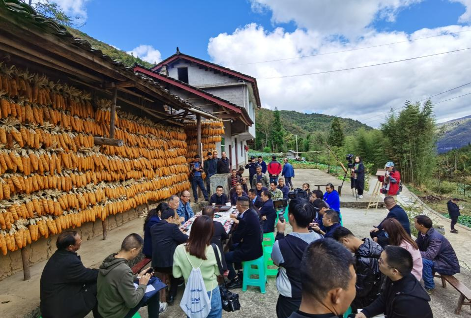 参加武隆国际创客艺术村“微风仙谷”开工仪式后在院坝与农户座谈