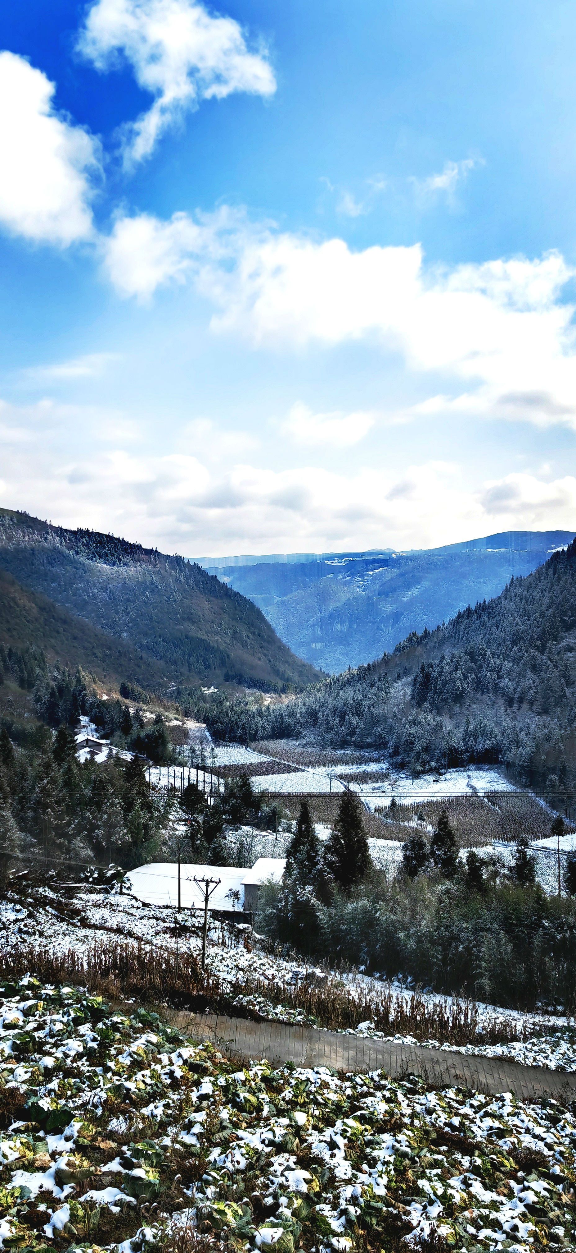 2022年12月17日,首场瑞雪下的“微风仙谷”,对面为仙女山机场