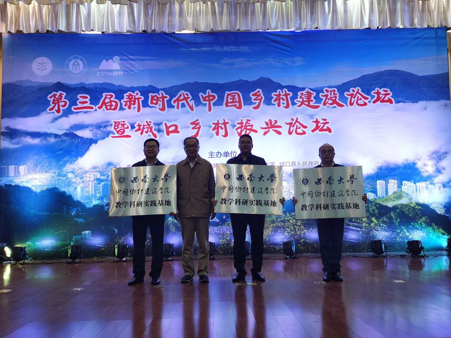 为积极加强与城口县校地合作,深化高校服务乡村振兴战略。我院与城口县岚天乡、河鱼乡、龙田乡三个乡共同打造教学科研实践基地。9月23日,基地授牌仪式在第三届新时代中国乡村建设论坛暨城口乡村振兴论坛现场举行。我院执行院长温铁军教授为岚天乡、河鱼乡、龙田乡三个乡授牌,三个乡的政府负责人上台接牌。