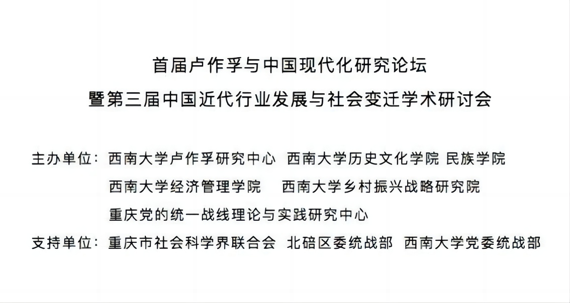 首届卢作孚与中国现代化研究论坛暨第三届中国近代行业发展与社会变迁学术研讨会