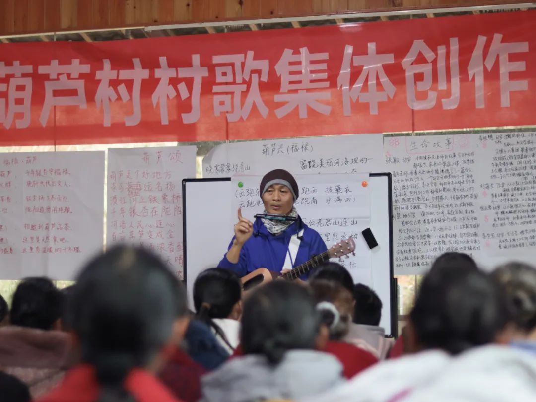此次村歌《葫芦颂》采用了由政府引导、新老村民主创、社会参与的“共创”方式。“爱故乡·村歌计划”由我院与北京爱故乡文化发展中心等单位联合发起,旨在以乡村音乐为途径、以村民为主体、组织开展参与式集体创作,让村民唱自己写的歌,以此打造出属于乡村本地的、独特的“共创型”村歌。