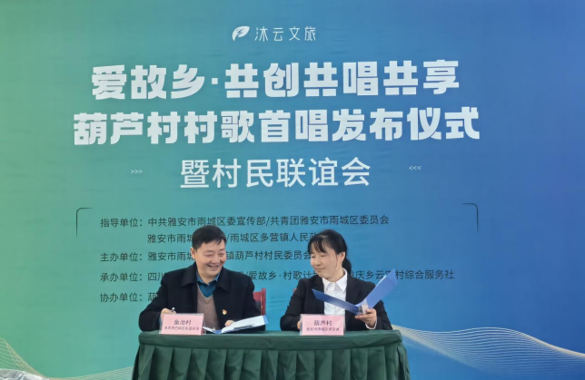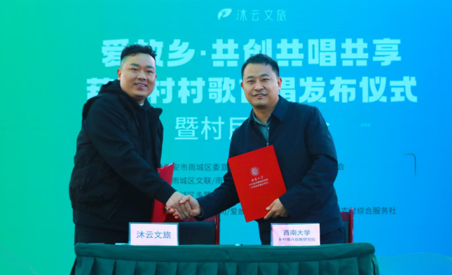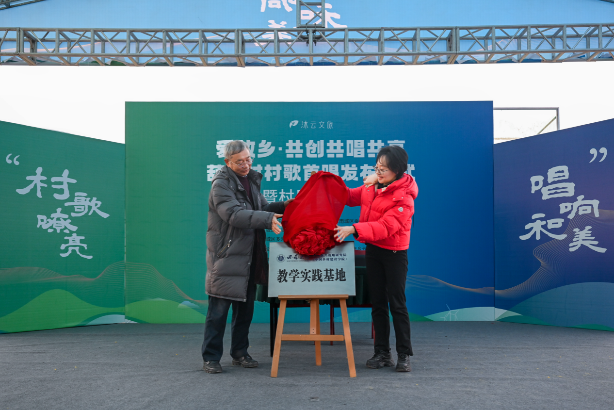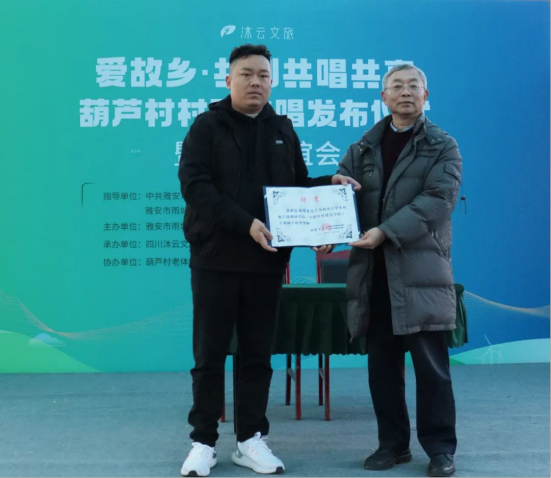 为落实“一号工程”、促进川渝合作,我院以“共创型”村歌为抓手推进地方合作与社会服务工作。12月10日,我院又一新增教学实践基地在四川雅安市雨城区多营镇葫芦村落地。同时,在我院指导与协作下,该村诞生四川省第一支集体共创村歌——《葫芦颂》。在《葫芦颂》首唱发布仪式上,我院与四川沐云文旅有限公司签署战略合作协议。
