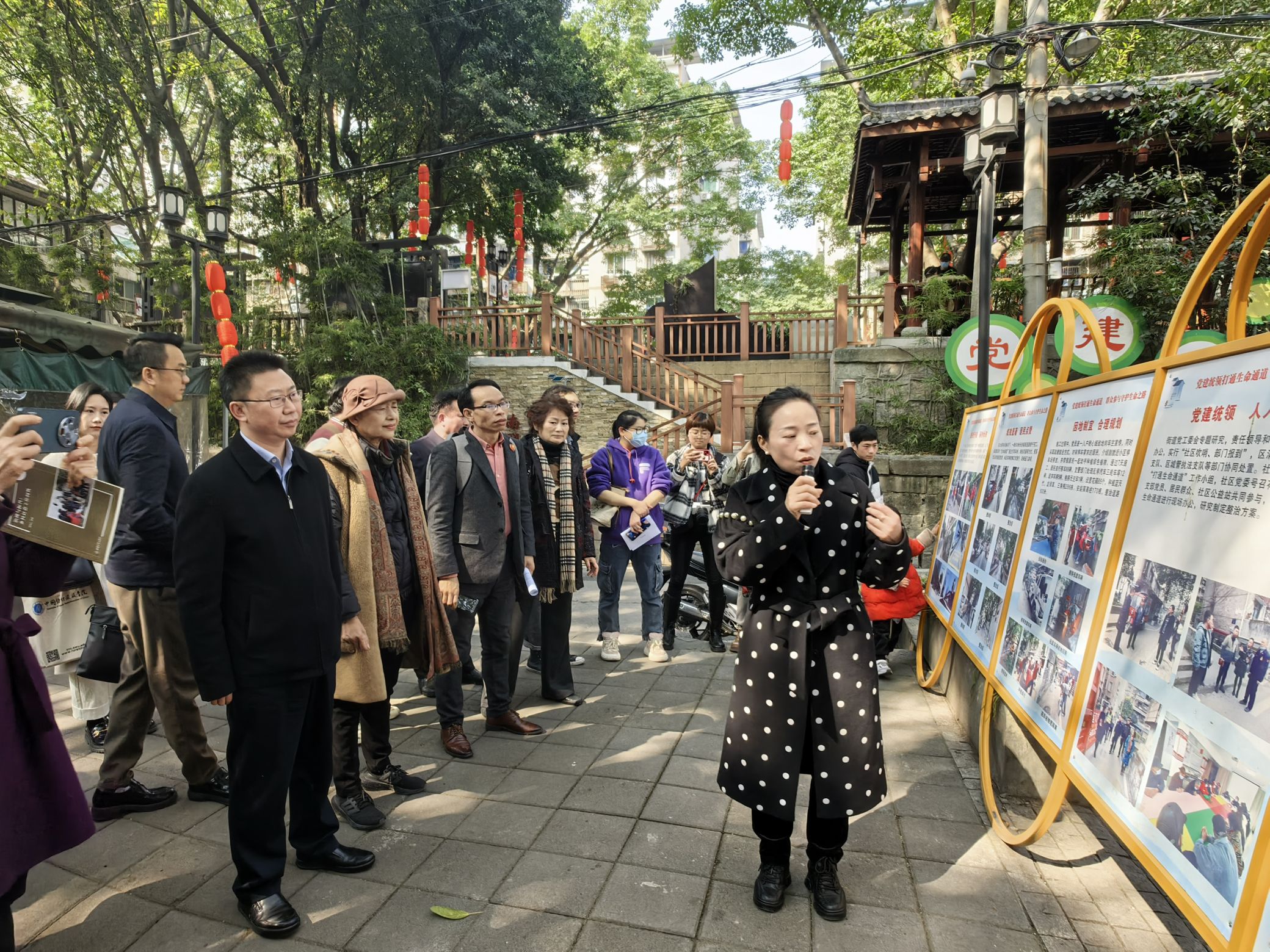 南湖社区党委书记余建带领参观南湖社区“三益”建设成果